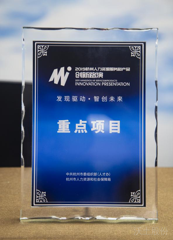 11月9日,由中共杭州市委组织部(人才办)、杭州市人力资源和社会保障局主办的“发现驱动·智创未来--2019杭州人力资源服务和产品创新路演”,在杭州国际博览中心成功举办。沃土股份的“网络创业培训及服务SaaS系统”项目取得了总分第二名的优异成绩,并成功入选2019杭州人力资源服务和产品创新路演重点项目,获得政府专项奖金扶持。
