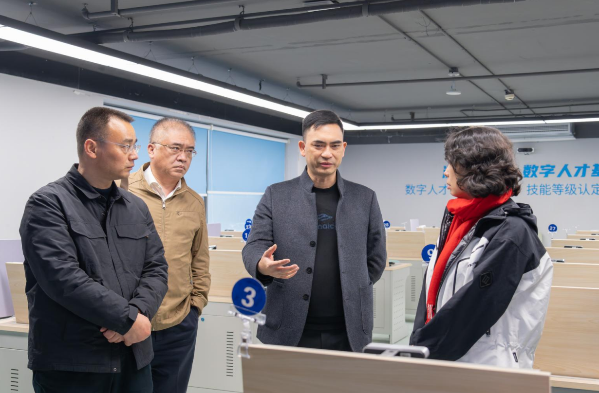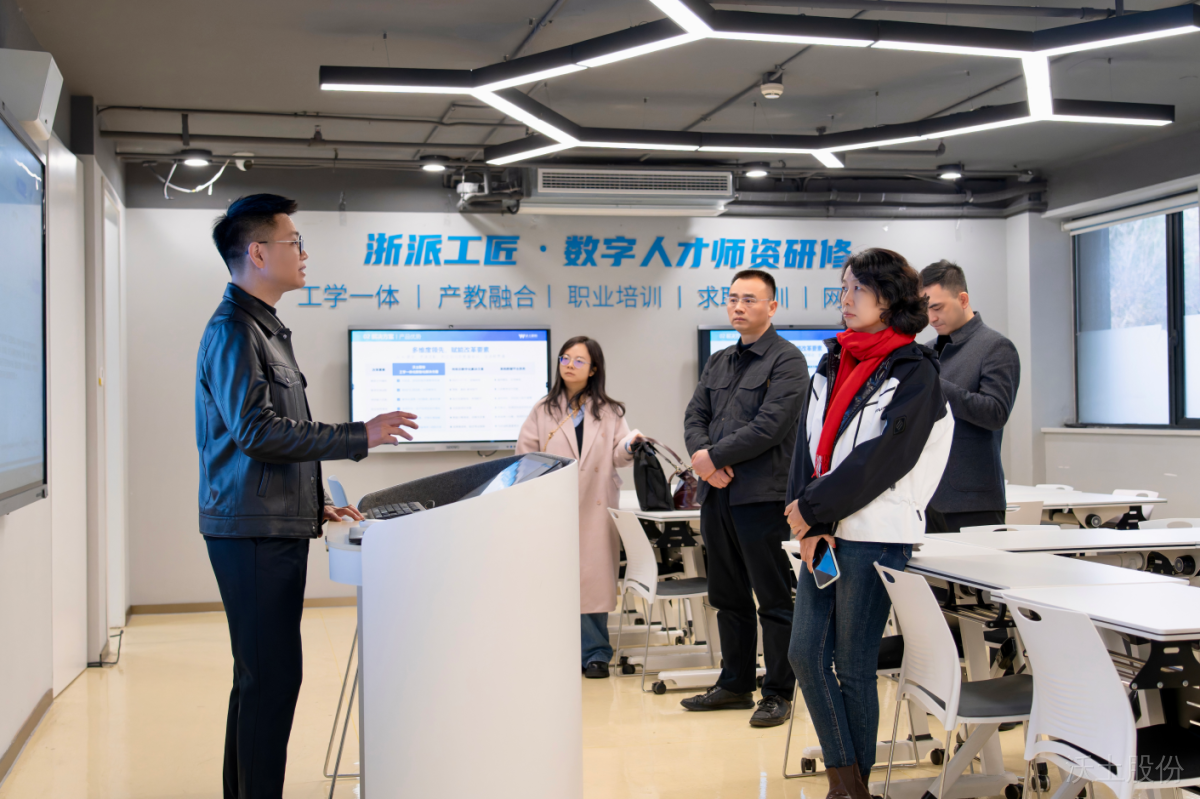 12 月 22 日,深圳市人力资源和社会保障局党组成员、副局长马艳带队赴杭州开展技能人才培养专题调研,重点走访浙派工匠・数字人才基地。公司董事长祝孝林全程陪同考察,总裁严学明现场详解公司技工教育工学一体化改革数智产品与服务体系。
