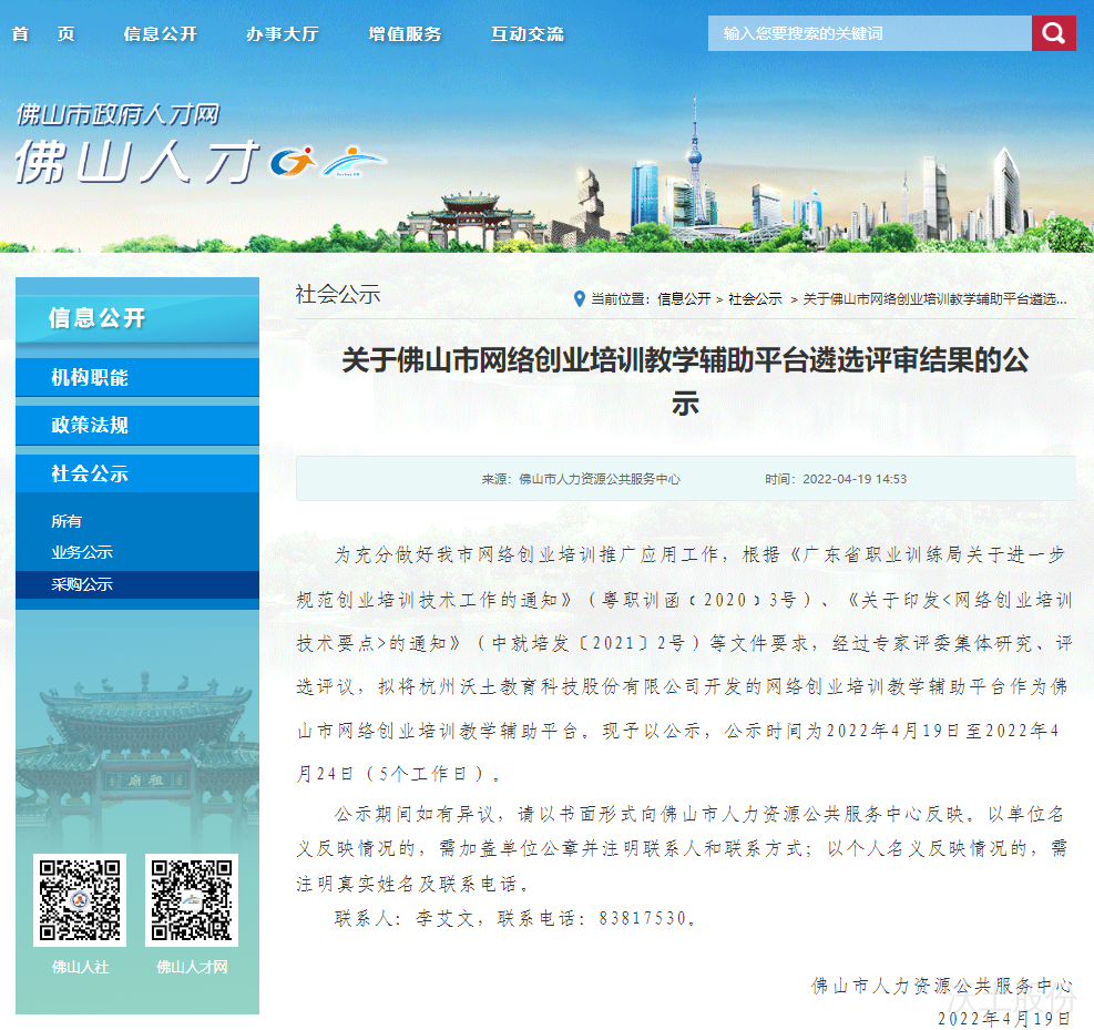 相关链接:关于佛山市网络创业培训教学辅助平台遴选评审结果的公示
