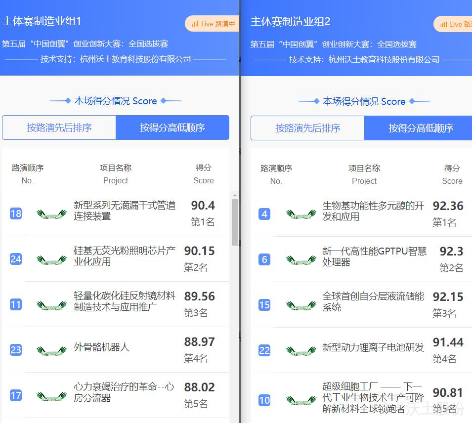 为防控疫情 ,全国选拔赛延续“线上路演+远程评审”的办赛方式,参赛团队通过视频会议进行线上路演,专家评委通过沃土股份研发的赛事系统进行线上打分,成绩实时公示。经过3天的激烈比拼,最终共有120个项目晋级全国总决赛。
