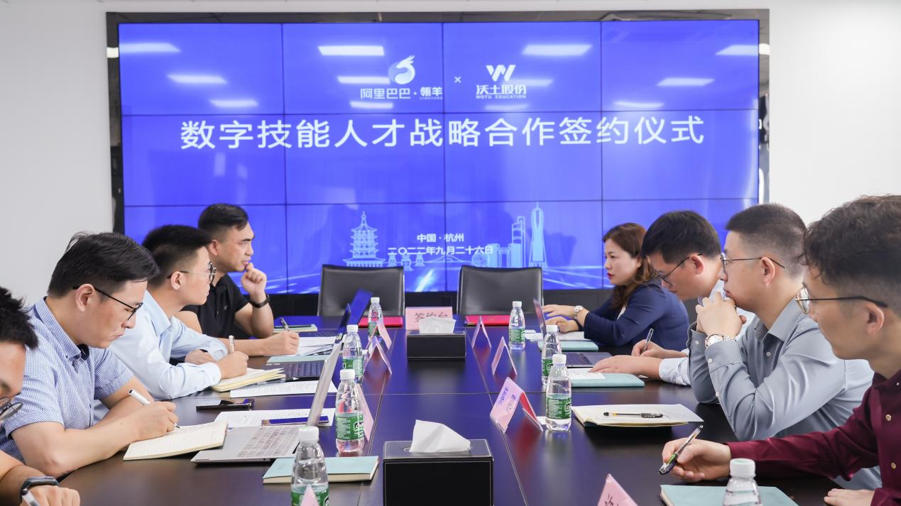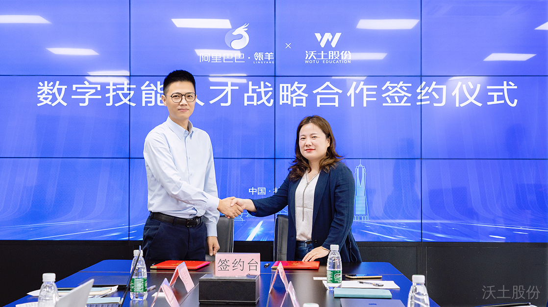 9月26日,杭州瓴羊智能服务有限公司与杭州沃土教育科技股份有限公司数字技能人才培养战略合作签约仪式在杭州市西湖区立元大厦举行,瓴羊智能培训认证业务负责人林丽与沃土股份总裁严学明作为双方代表签署了合作协议。