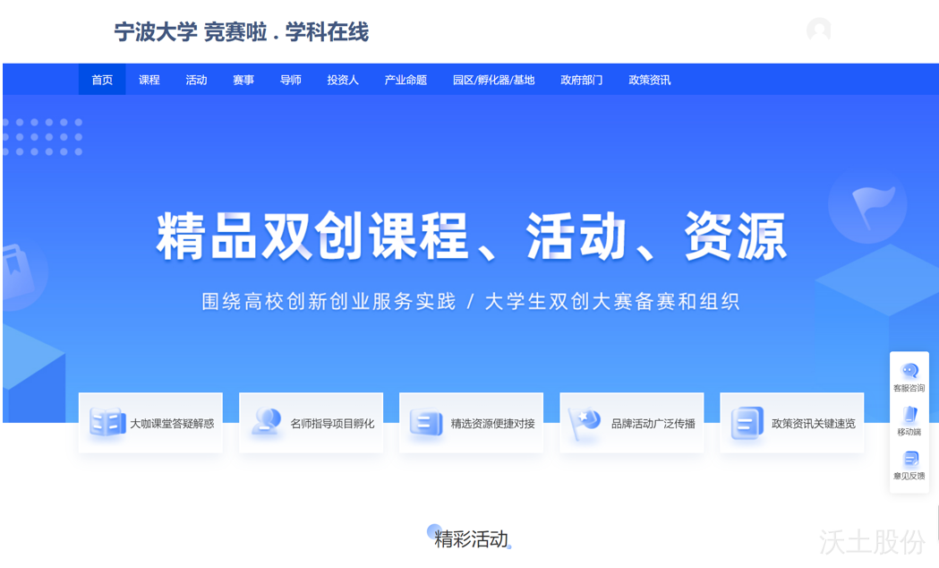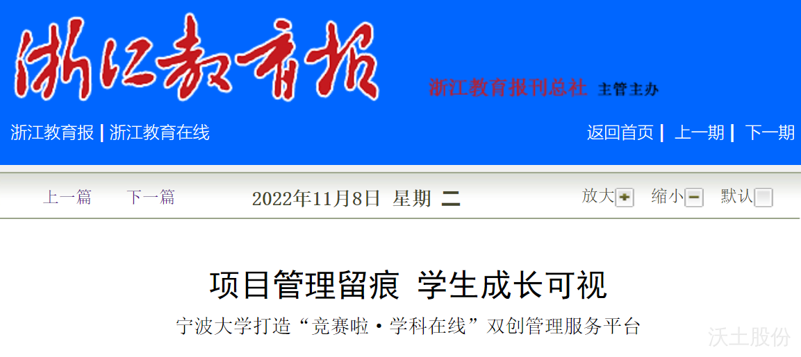 近日,沃聚科技为宁波大学双创教育打造的“竞赛啦·学科在线”双创管理服务平台已投入试用,获得了宁波大学的高度肯定。