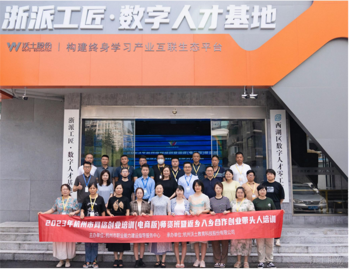 为深入实施创业培训“马兰花计划”,进一步推动杭州“双创”工作,适应新形势下的网络创业培训发展需要,充实全市网络创业培训师资队伍,强化师资队伍建设,由杭州市职业能力建设指导服务中心主办,杭州沃土教育科技股份有限公司承办的2023年杭州市网络创业培训(电商版)师资班暨返乡入乡合作创业带头人培训于7月21日正式拉开帷幕。