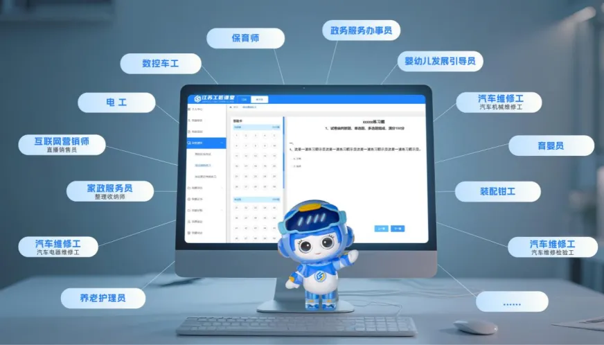 苏巧巧优先从民生服务、工业制造、现代服务等领域,精心挑选市场需求旺盛、发展前景广阔的13个热门职业(工种)试题上线!他们是电工、车工(数控车工) 、汽车维修工(汽车电器维修工、汽车机械维修工、汽车维修检验工)、政务服务办事员、装配钳工、互联网营销师(直播销售员)、保育师、家政服务员(整理收纳师)、养老护理员、婴幼儿发展引导员、婴幼儿发展引导员(育婴员)。后续更多职业(工种)练习试题将陆续上线!