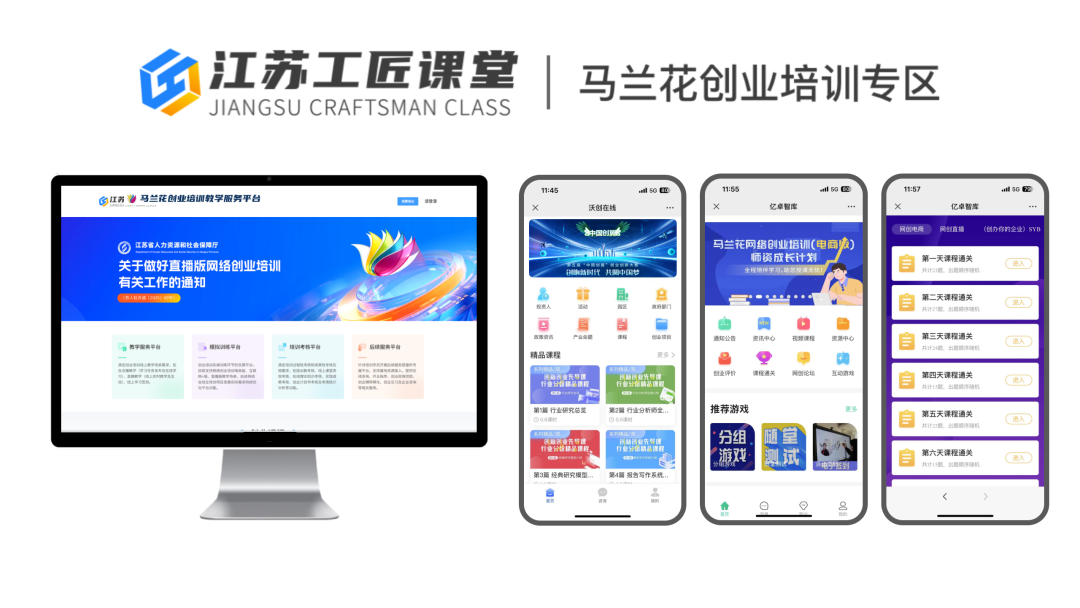 “江苏工匠课堂丨马兰花创业培训专区”作为全省统一的创业培训数字化管理及教学服务平台,在培训中为培训机构、学员和管理部门提供了高效、便捷的一站式解决方案: